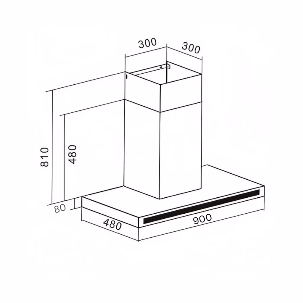 - Exaustor de parede em T de aço inoxidável de 90 cm